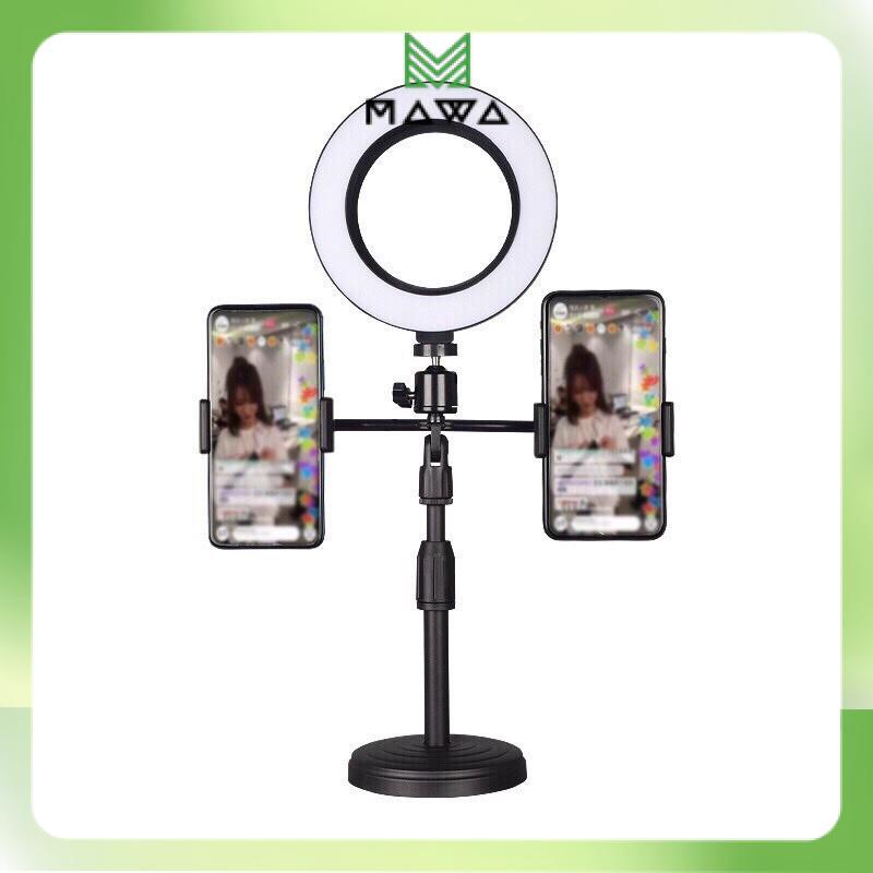 Giá Đỡ Điện Thoại Livestream 2 kẹp bên và Đèn Led 16cm siêu sáng, phụ kiện để bàn hỗ trợ Livestream