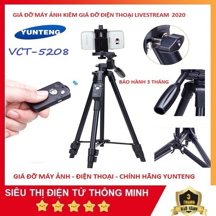 Giá Đỡ Điện Thoại Máy Ảnh, Chân Máy Ảnh Camera Chuyên Nghiệp Yunteng VCT 5208 Hỗ Trợ Livestream, Bán Hàng Online