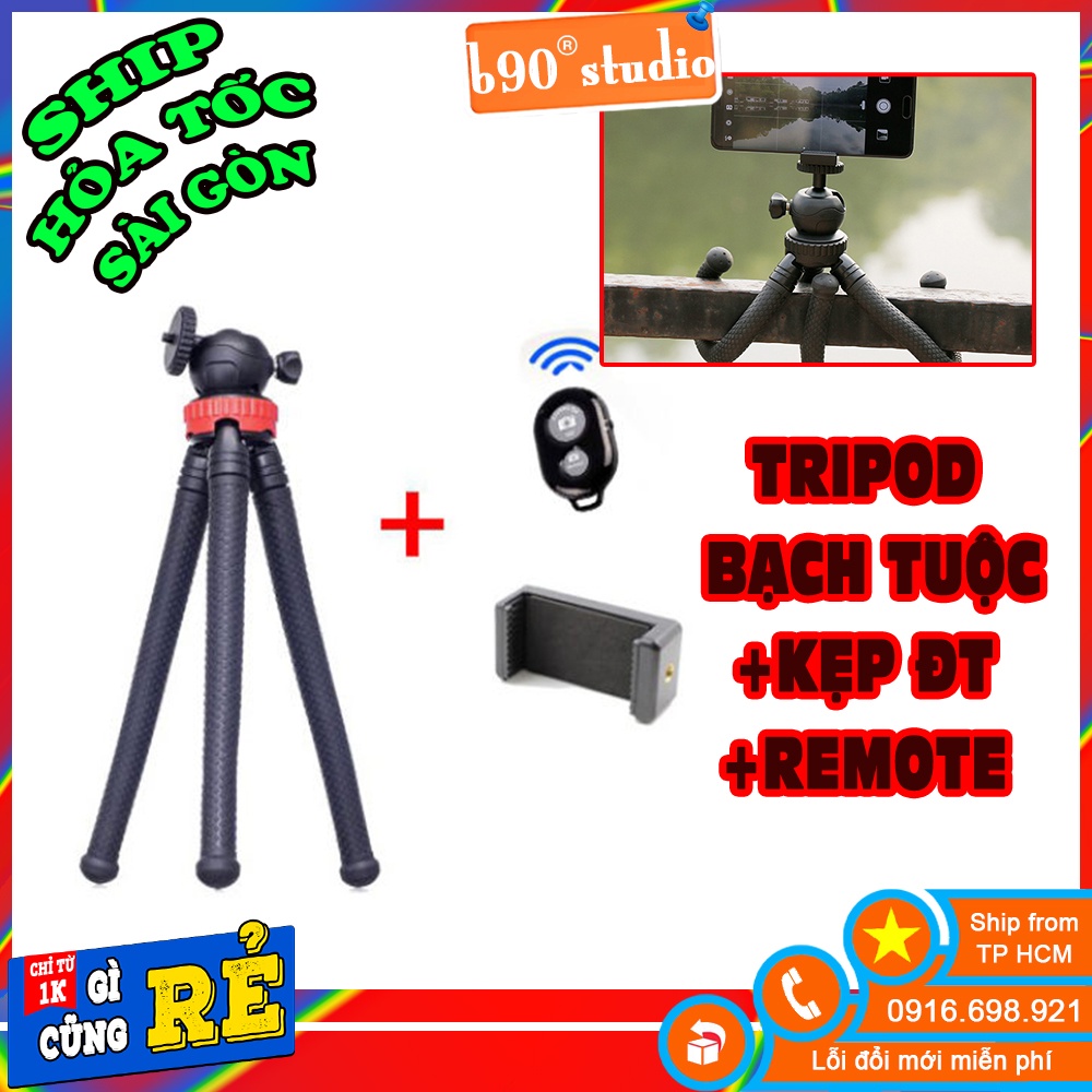 - Tripod bạch tuộc cho điện thoại, một tripod có cấu tạo siêu bền bỉ bằng hợp kim không gỉ, linh hoạt, chống trượt và chống nước.