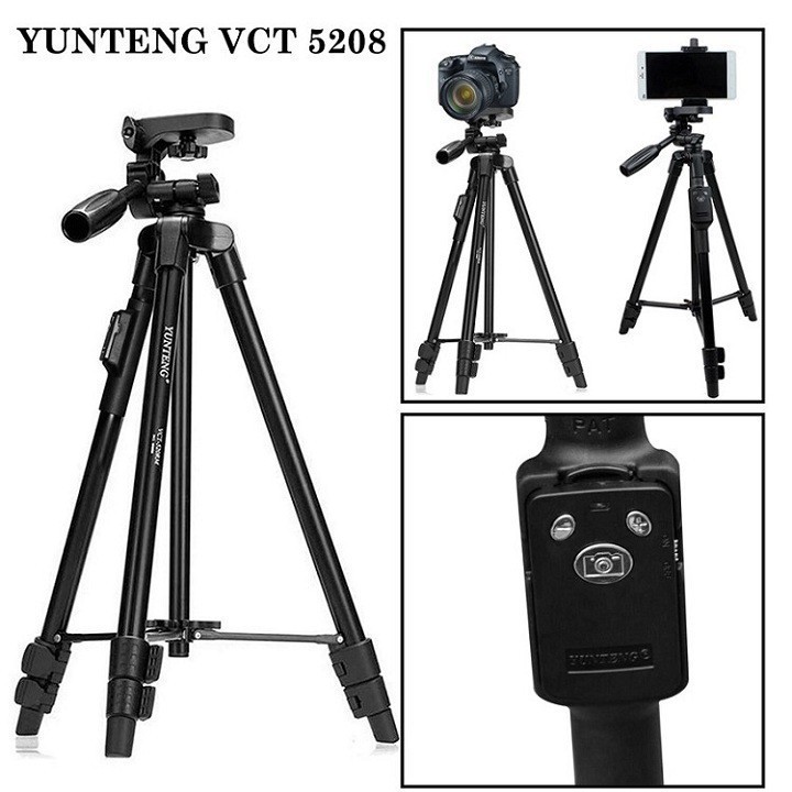 Chân máy ảnh Yunteng VCT 5208 là tripod Cao Cấp được sản xuất dành cho điện thoại và máy ảnh, máy quay cỡ nhỏ, rất chuyên nghiệp