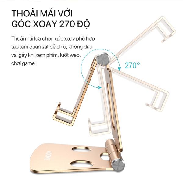 Giới thiệu Giá Đỡ Điện Thoại Máy Tính Bảng Hợp Kim Nhôm ACOME AH01 Điều Chỉnh Linh Hoạt 270 Độ Màu Xám Hàng Chính Hãng