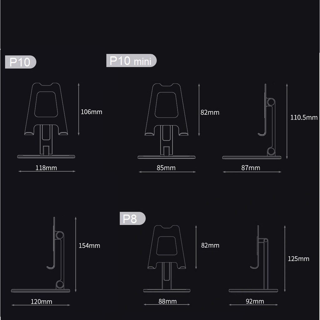 ✅ Giá đỡ điện thoại, máy tính bảng cho iPhone, iPad, Surface, Samsung hợp kim nhôm, có thể gấp gọn P10 P25 P15 P19 (từ 4.7 ~ 12.9 inch).✅ Chất liệu chính: Hợp kim nhôm rất giầy dăn và sang trọng.