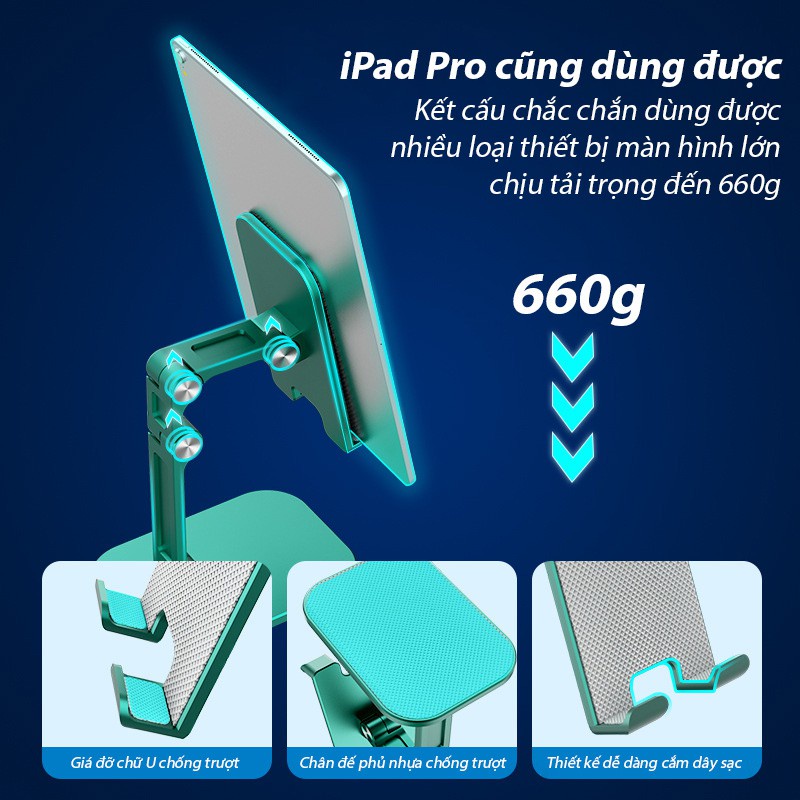 ✔️Chịu tải trọng đến 660g (iPad Pro vẫn dùng được nhé)