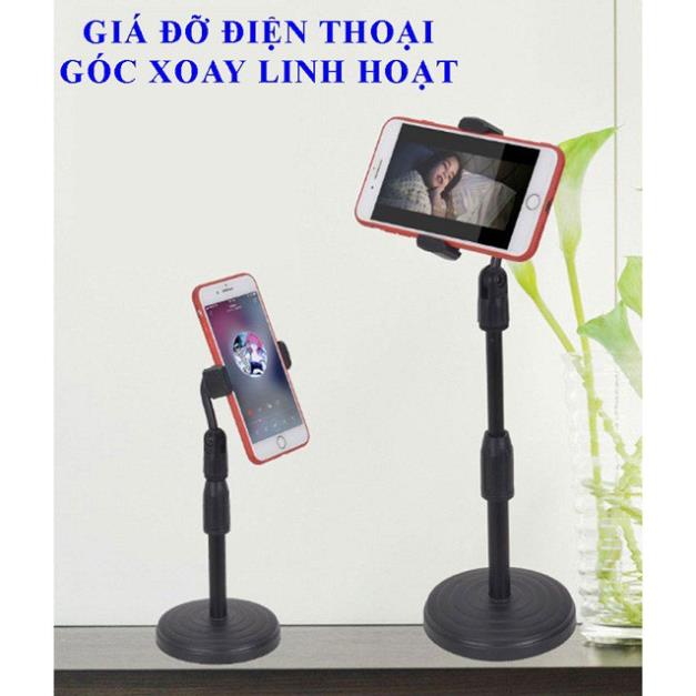 Giá đỡ điện thoại Microphone Stands, kẹp chống lưng 360 ,đế chân tròn để bàn, giá đỡ tiện lợi đa năng màu đen