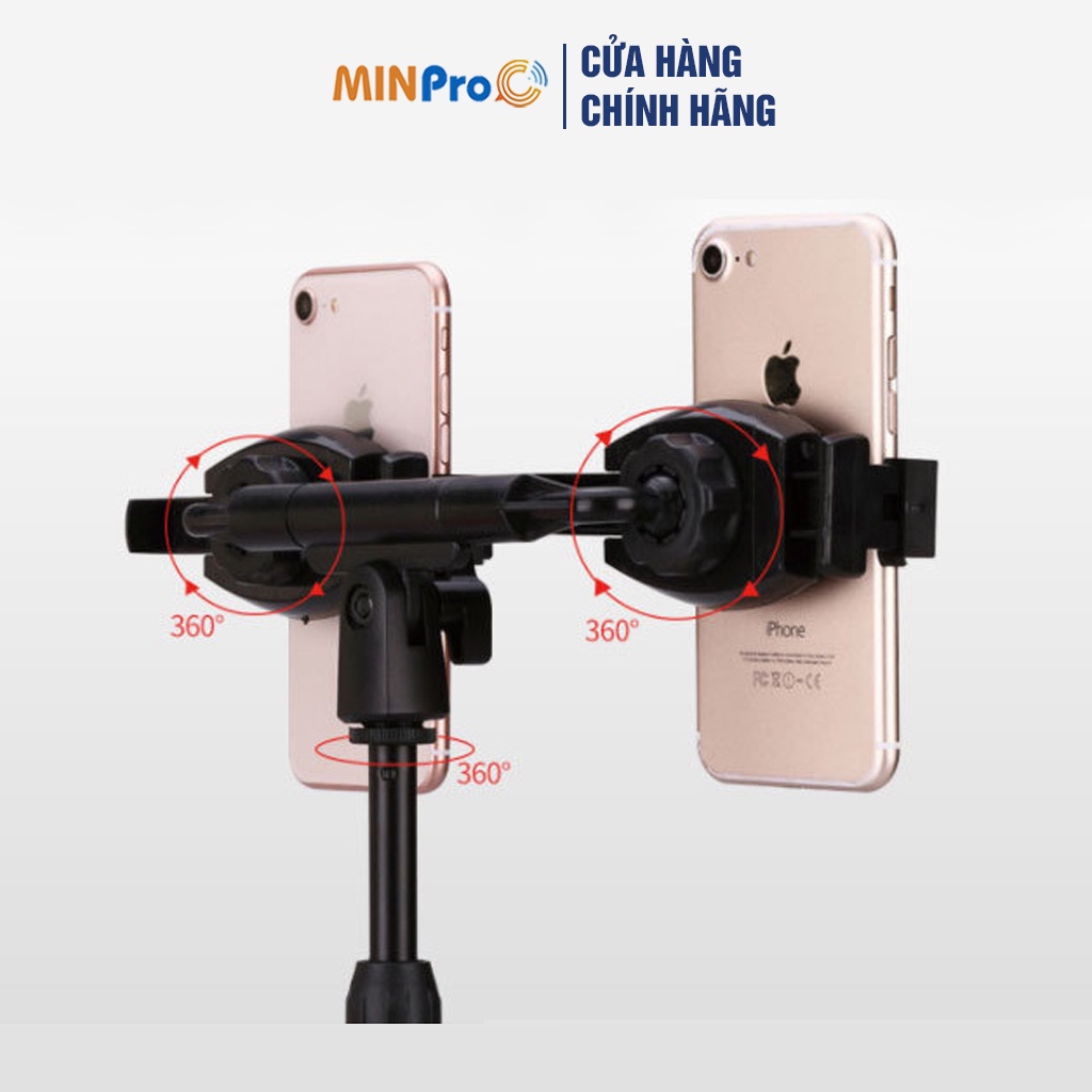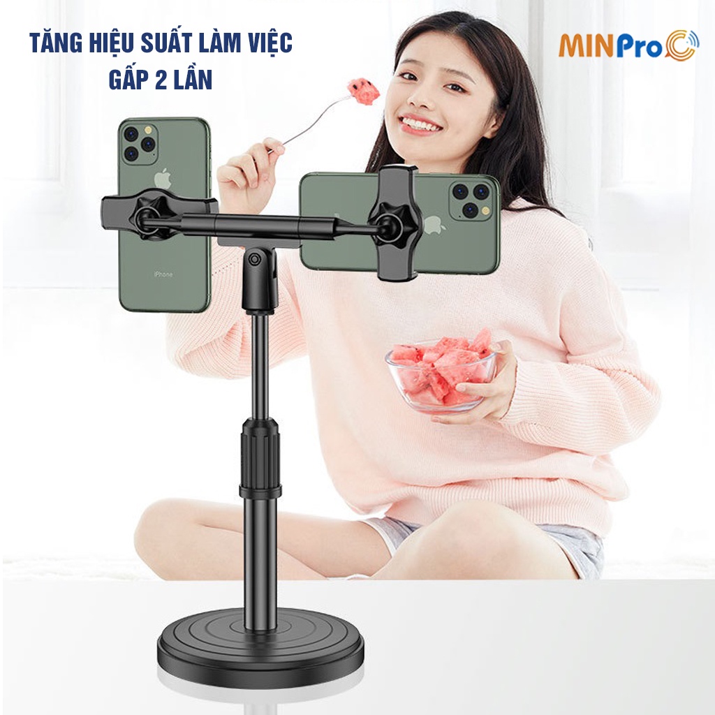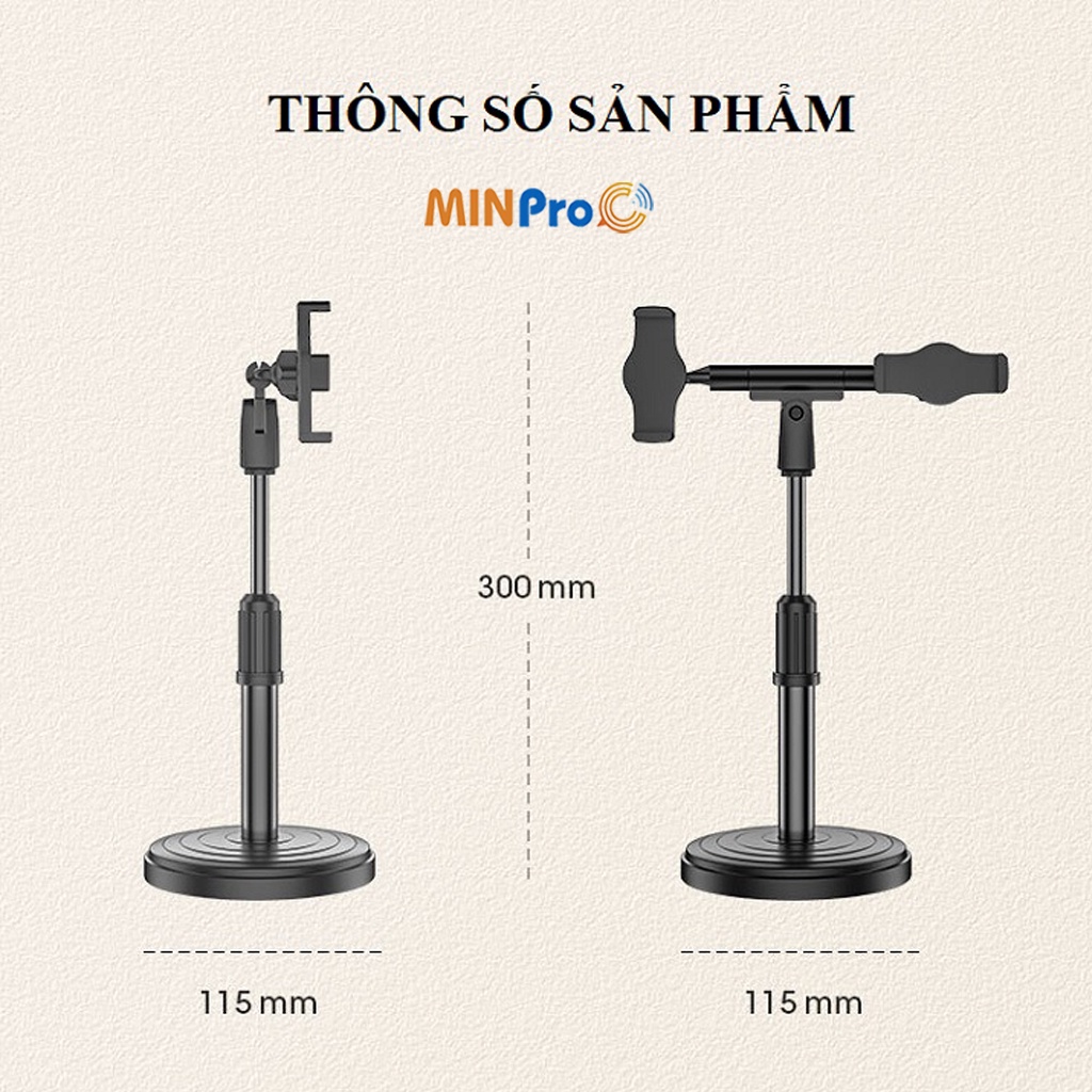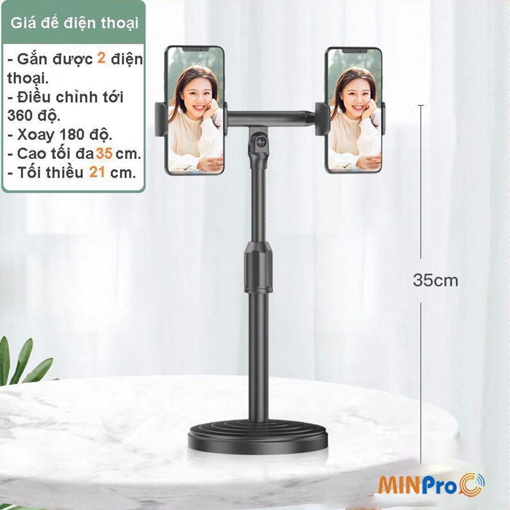 Giới thiệu Giá đỡ điện thoại Microphone Stands 2 kẹp chống lưng 360, đế chân tròn để bàn livestream đa năng, tiện lợi MINPRO