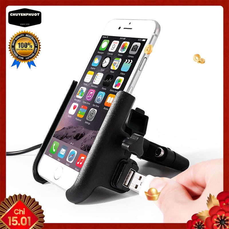 THÔNG TIN NỔI BẬTGiá đỡ điện thoại có sạc gắn chân kính hoặc ghi đông xe máy, xe đạp, moto