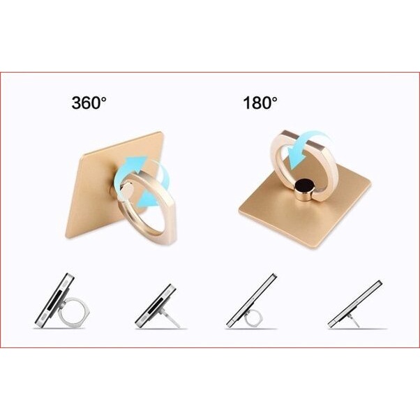 + Sản phẩm dán vào mặt sau điện thoại hay máy tính bảng với chế độ xoay 360 độ, phần nhẫn đeo tay được làm cứng cáp chống trơn trượt khi sử dụng điện thoại