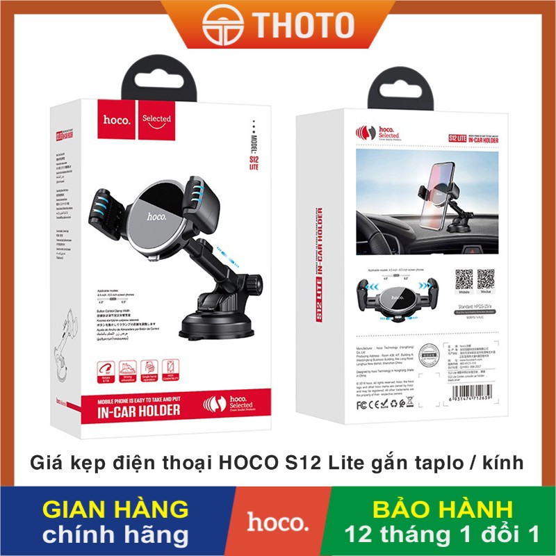 Giá đỡ điện thoại ô tô CHÍNH HÃNG HOCO S12 Lite gắn taplo/ kính chắn gió xe, tay kéo dài xoay 360 độ, kẹp rất chắc chắn