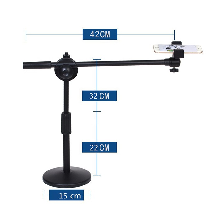 Giá đỡ điện thoại quay Video từ trên xuống. Dùng gắn điện thoại quay Review sản phẩm, hướng dẫn vẽ, viết chữ, dạy học … Bộ giá đỡ có thể tùy chỉnh các góc quay cao thấp. Thoải mái quay Video Review sản phẩm mà không cần ai cầm máy quay mà vẫn có thể tự làm với góc nhìn từ trên xuống.