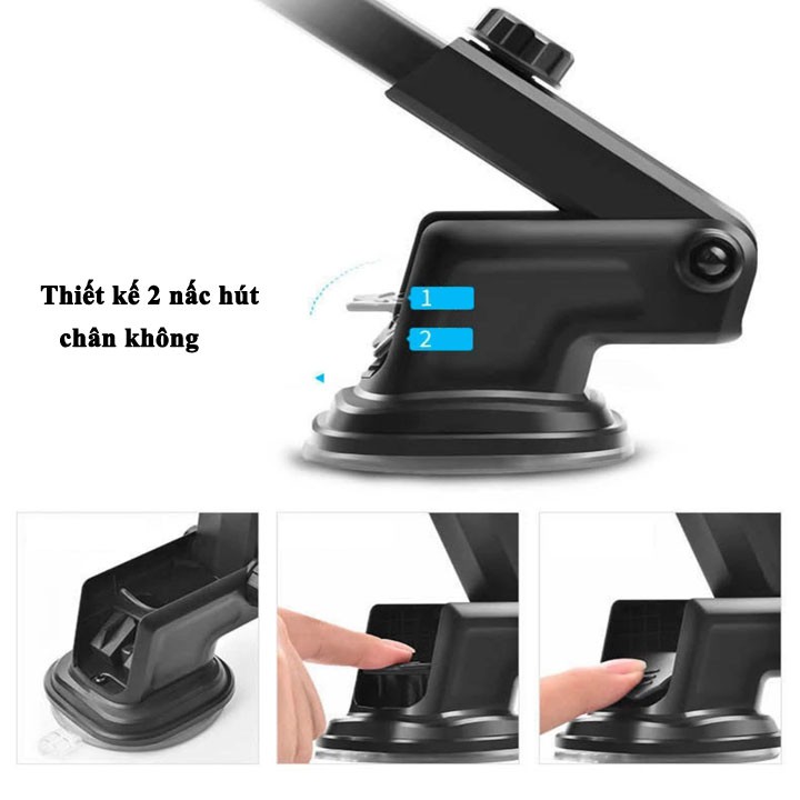 - Đế giá đỡ được thiết kế dạng chuck (hút chân không) kết hợp keo dính chắc chắn giúp dễ dàng bám chắc vào bề mặt taplo xe hoặc kính . Khi không sử dụng có thể tháo ra dễ dàng , không làm dơ bẩn xe .