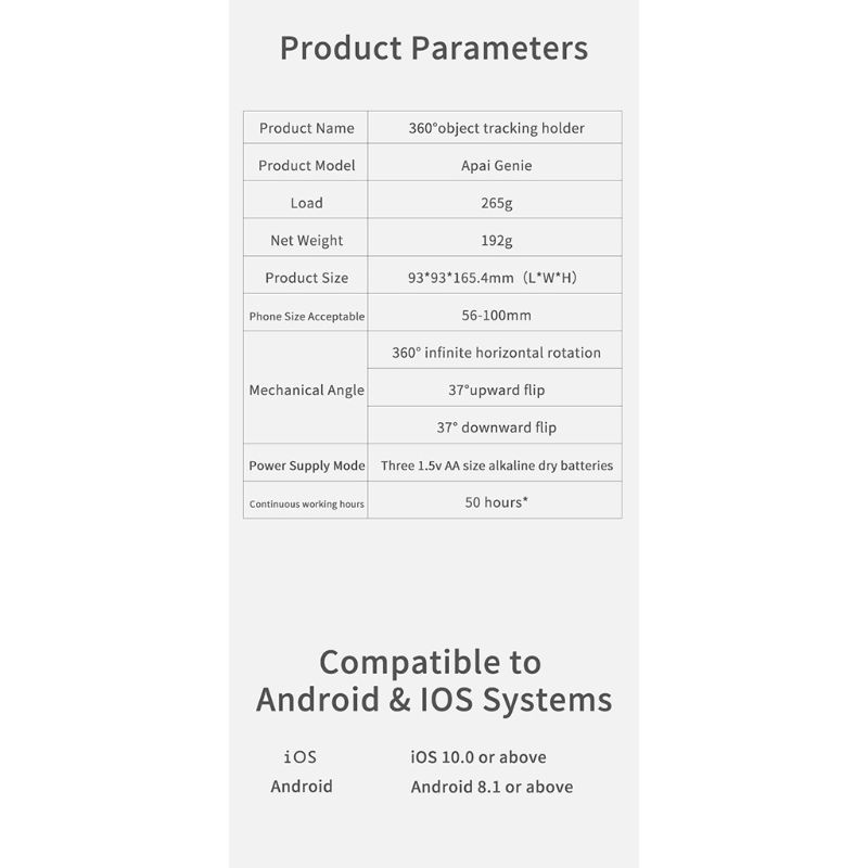 Face tracking holder introduce the AI technology of human image composition and scale estimation into intelligent shooting,360 degrees rotate around, and automatically recognize the person / PET.