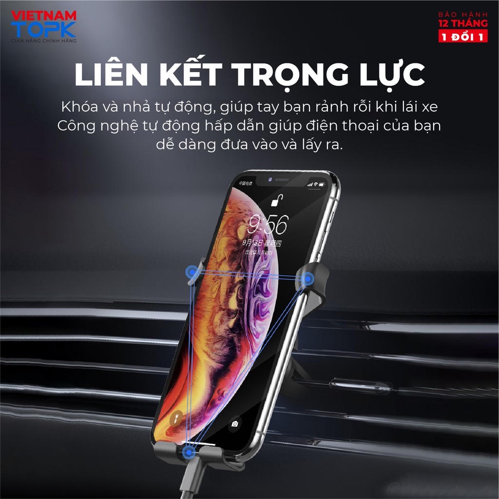 - Thiết kế không cần chạm thông minh, chỉ cần kẹp vào lỗ thông gió, nhấc/ đặt điện thoại trong vòng 1 giây bằng một tay. Liên kết trọng lực, khóa và nhả tự động, giúp tay bạn rảnh rỗi khi lái xe. Công nghệ tự động hấp dẫn giúp điện thoại của bạn dễ dàng đưa vào và lấy ra. Kẹp tự động điều chỉnh để gắn vào và tháo ra, hoạt động đơn giản, tiết kiệm thời gian và năng lượng, dễ dàng cắm sạc điện thoại với khe cắm.