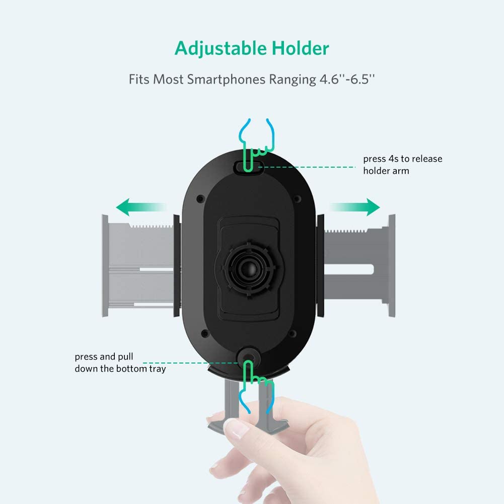 6. Thao tác đơn giản: Thao tác bằng một tay để đặt điện thoại của bạn chắc chắn vào giá đỡ. Chỉ cần nhấn nút nhả và các tay giữ sẽ tự động mở ra; nhấn nút phía sau giá đỡ để điều chỉnh cánh tay dưới để cầm điện thoại của bạn tốt hơn