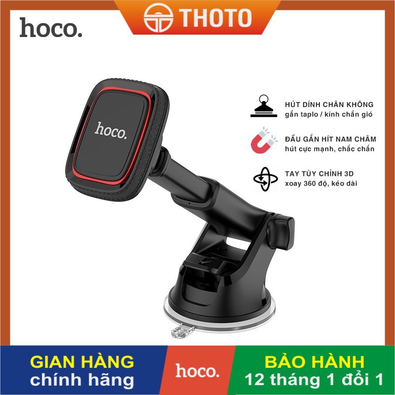 Giá đỡ điện thoại trên ô tô CHÍNH HÃNG HOCO CA42, đế hút chân không gắn taplo/kính, đầu hít nam châm cực mạnh, chắc chắn
