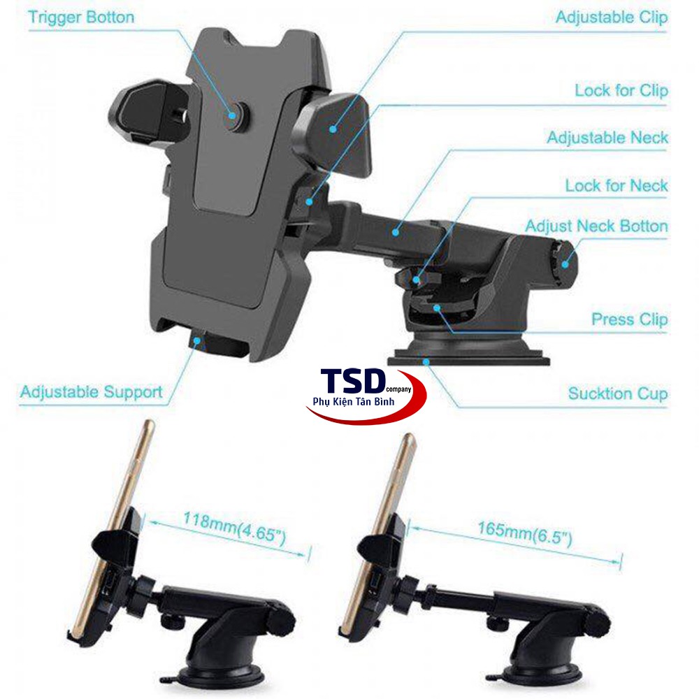 - Giá đỡ, kẹp điện thoại trên ô tô, xe hơi Long Neck, chất liệu nhựa cao cấp, tiện lợi, có thể gắn mọi nơi trên bề mặt kính ôtô, thậm chí cả táp lô. Tương thích với hầu hết các loại điện thoại di động. Thiết kế gồm 3 phần :