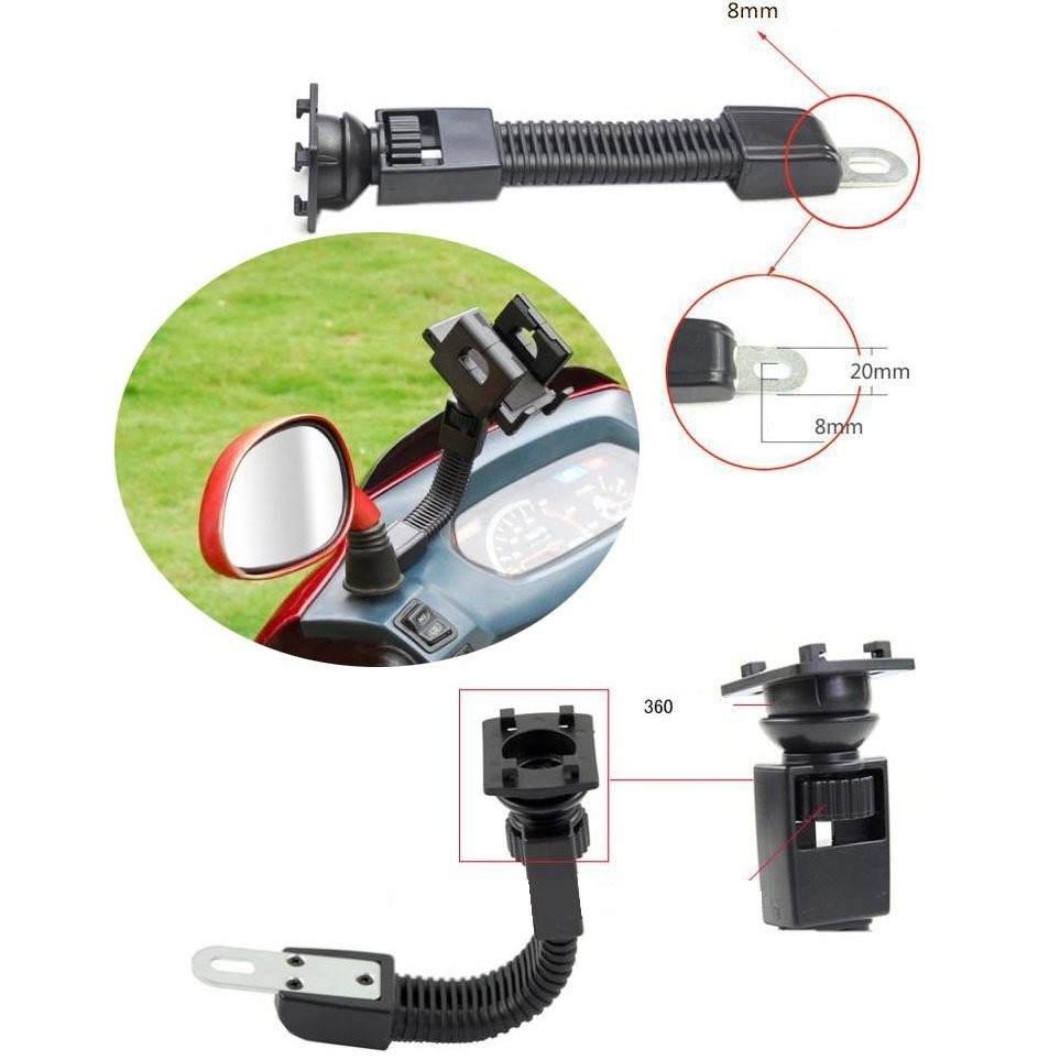 Giá đỡ điện thoại cho xe máy là sản phẩm yêu thích dành cho phượt thủ, Grab biker, hay shipper. Bạn có thể vừa đi đường, vừa check thông tin trên chiếc smartphone một cách tiện lợi.Giá đỡ điện thoại gắn cho xe máy là phụ kiện giá đỡ gắn vào chân kính chiếu hậu (lỗ 10mm) cho hầu hết chủng loại mô tô, xe máy hiện nay tại Việt Nam.