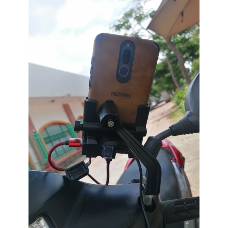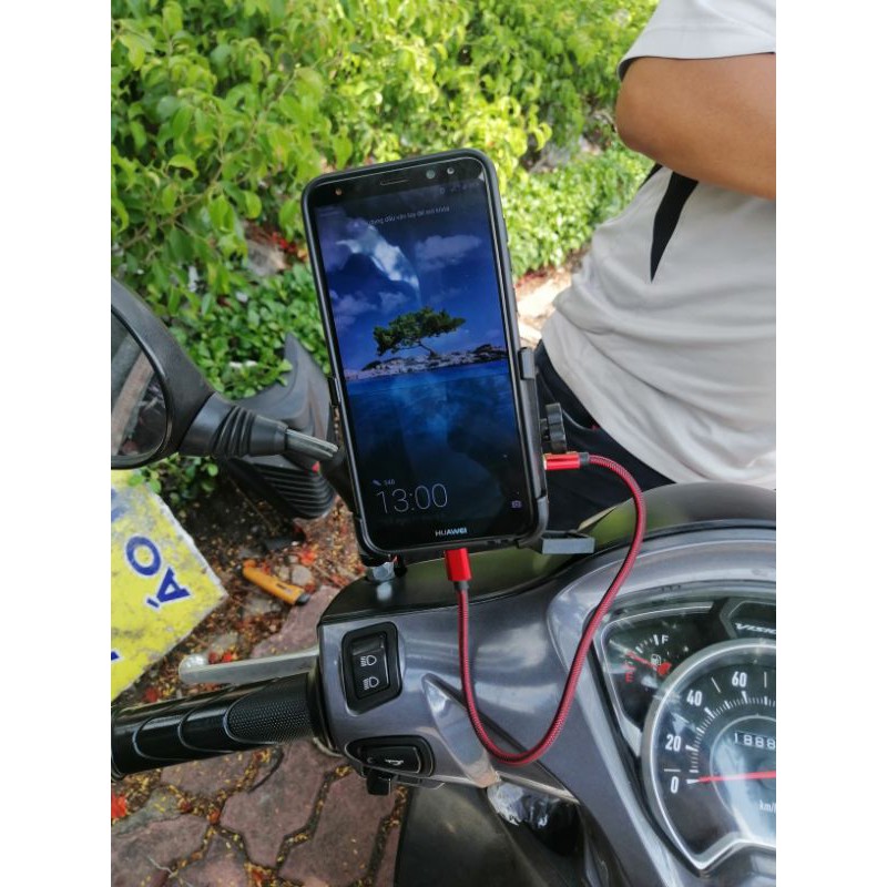 Mô tô, xe máy > Phụ kiện xe máy > Giá đỡ điện thoại || giá đỡ điện thoại trên xe máy C2 kiêm sạc 2 cổngSo sánh giá ×