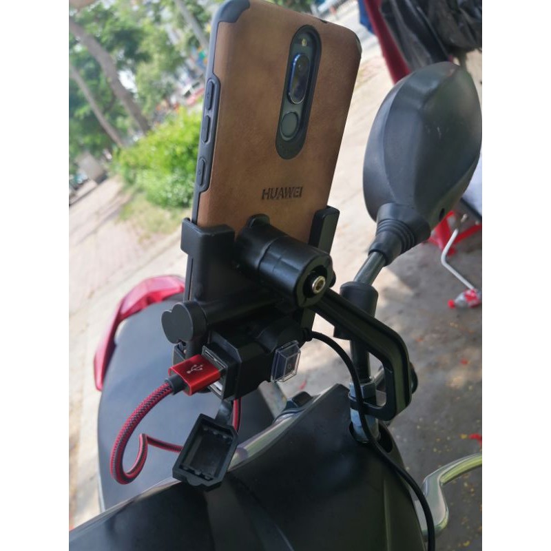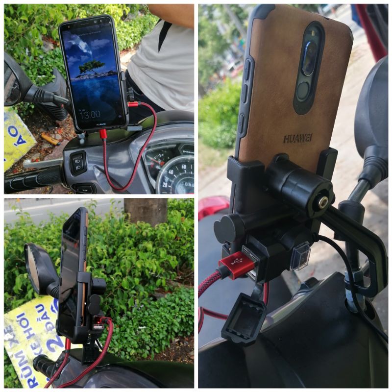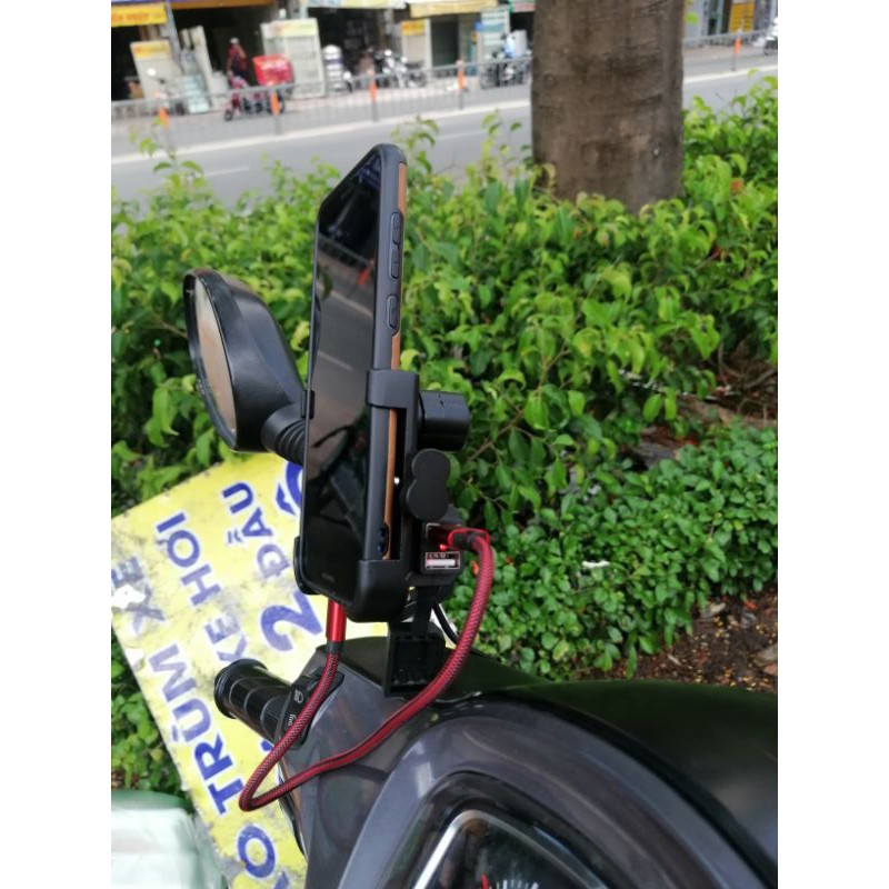 giá đỡ điện thoại trên xe máy có 2 cổng sạc