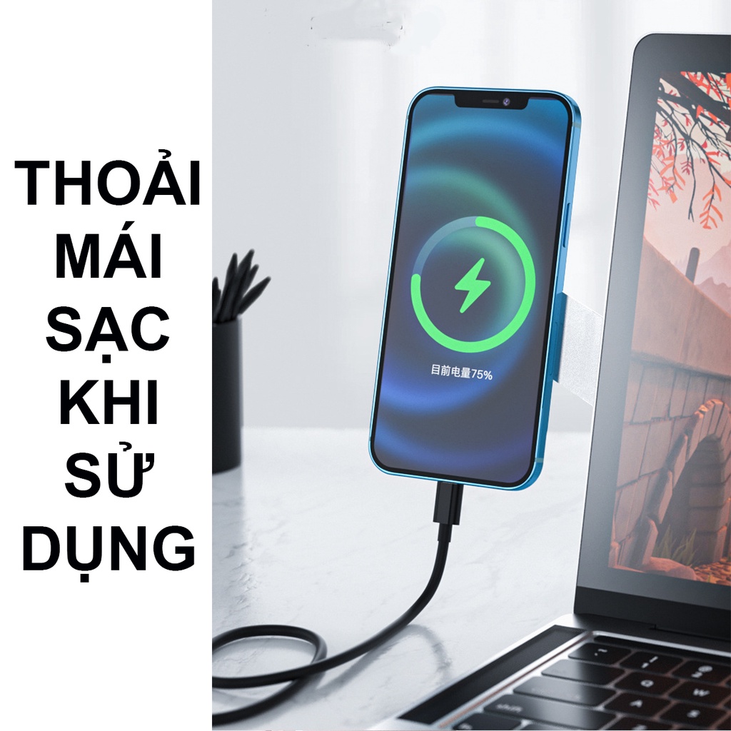 Giới thiệu Giá đỡ điện thoại từ tính gắn với laptop chất liệu hợp kim nhôm không rỉ có thể điều chình góc để điện thoại