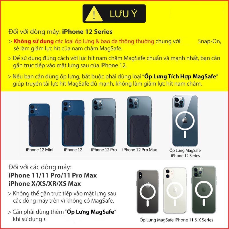 ⚠️ Để sử dụng đúng cách với lực hít nam châm MagSafe chuẩn và mạnh nhất, bạn cần gắn trực tiếp vào mặt lưng sau của iPhone 12/13.