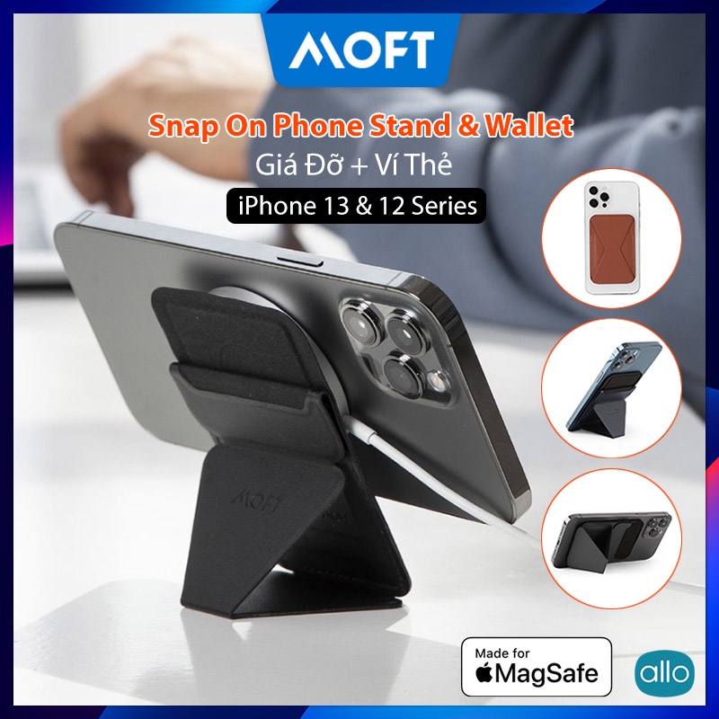 🔷 Moft Snap-On Wallet Stand "MagSafe" : 👉 Phiên bản cho iPhone 12, tích hợp khe để thể (gắn tháo bằng từ tính)