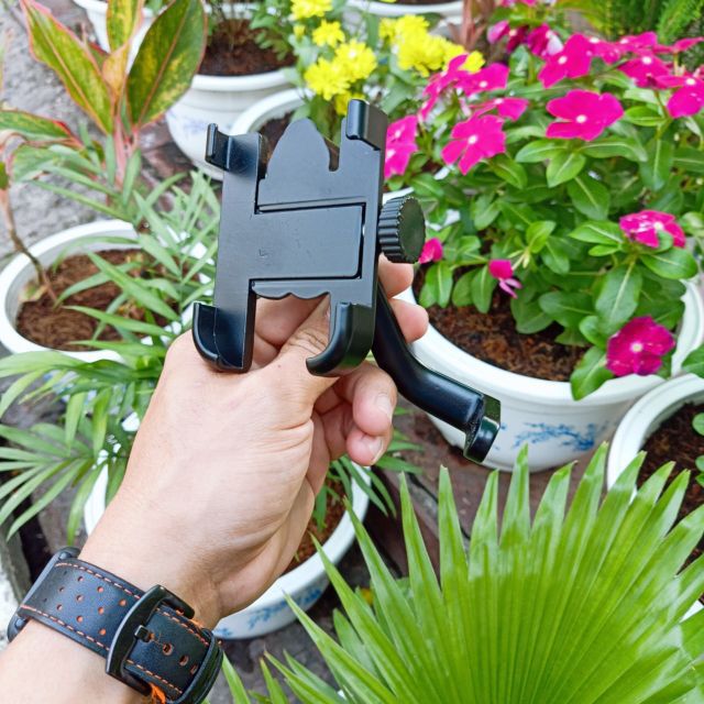 Đế gắn điện thoại trên xe máy được sử dụng để kẹp vào phần ghi đông phía trước xe, thuận thiện cho việc sử dụng mọi lúc mọi nơi.