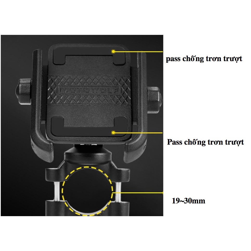 Giá đỡ điện thoại xe máy, kẹp điện thoại xe máy hợp kim Motowolf 2805 chắc chắn, chống rung, chống giựt