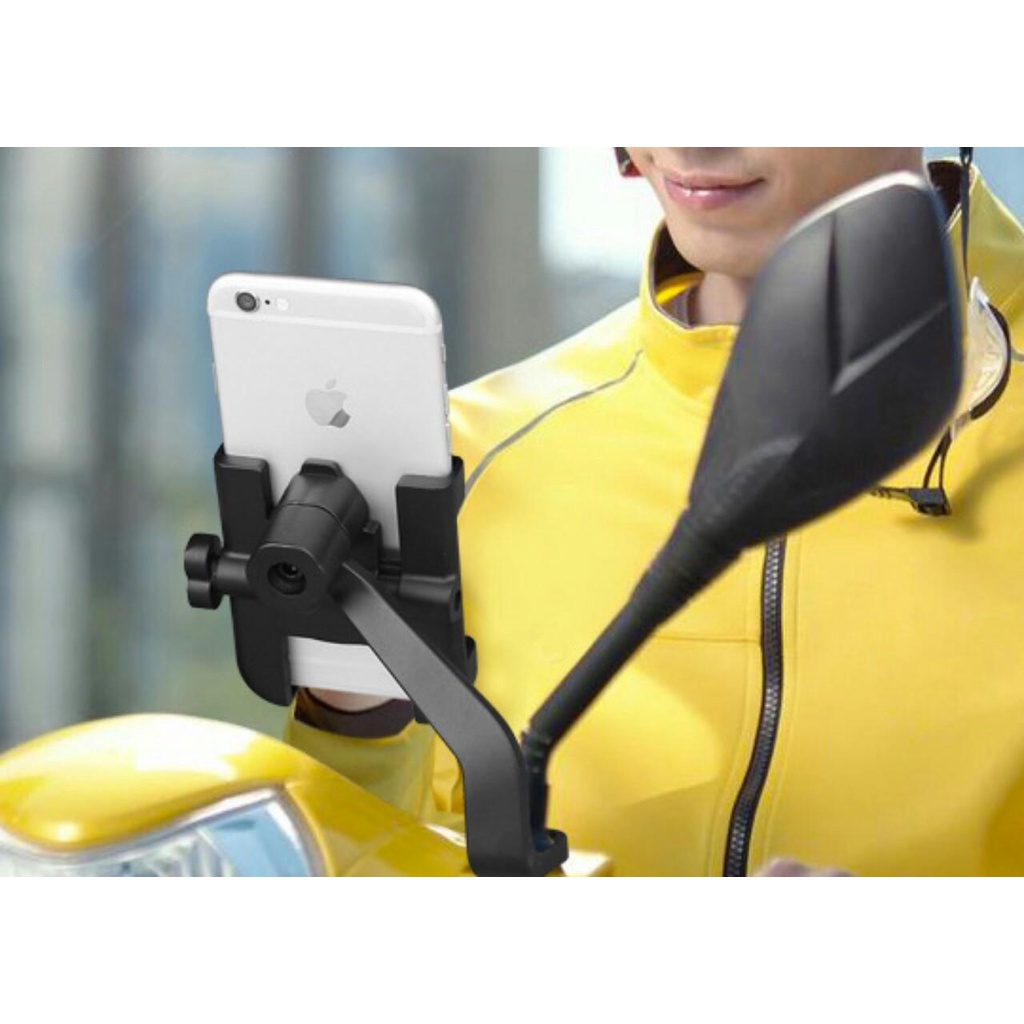 Đế gắn điện thoại trên xe máy được sử dụng để kẹp vào phần ghi đông phía trước xe, thuận thiện cho việc sử dụng mọi lúc mọi nơi.