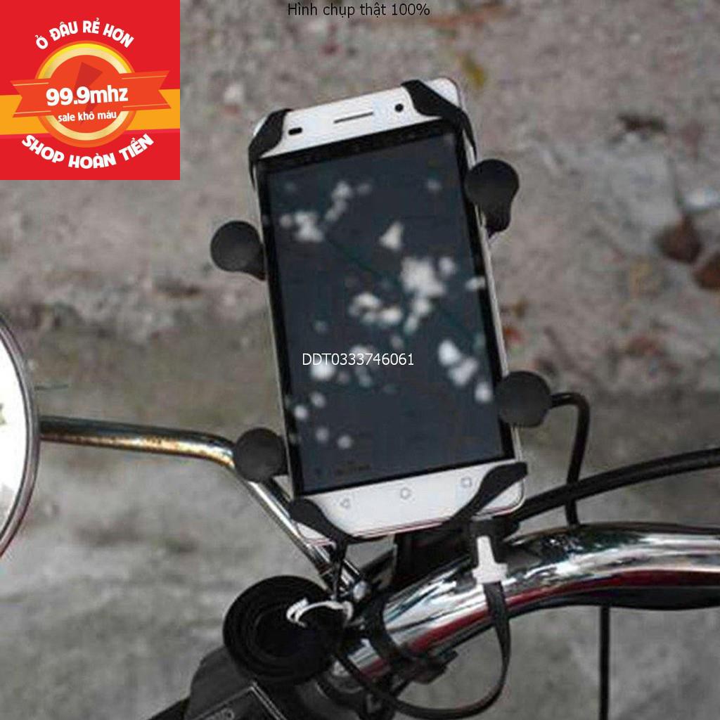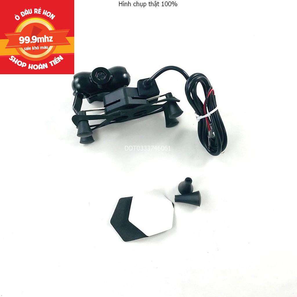 Giá Đỡ Điện Thoại Xe Máy Lắp Ở Chân Gương Có Sạc Kẹp 2 Bên Cho Mọi Loại Xe