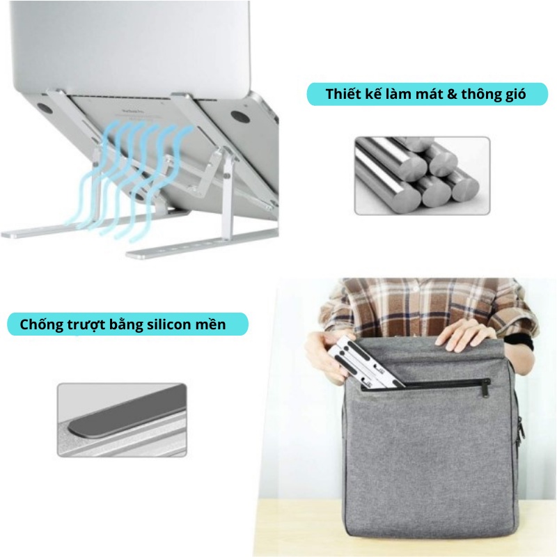🔎Đệm cao su được thiết kế ở các vị trí tiếp xúc giúp chống trơn trượt và KHÔNG làm trầy xước máy tính của bạn