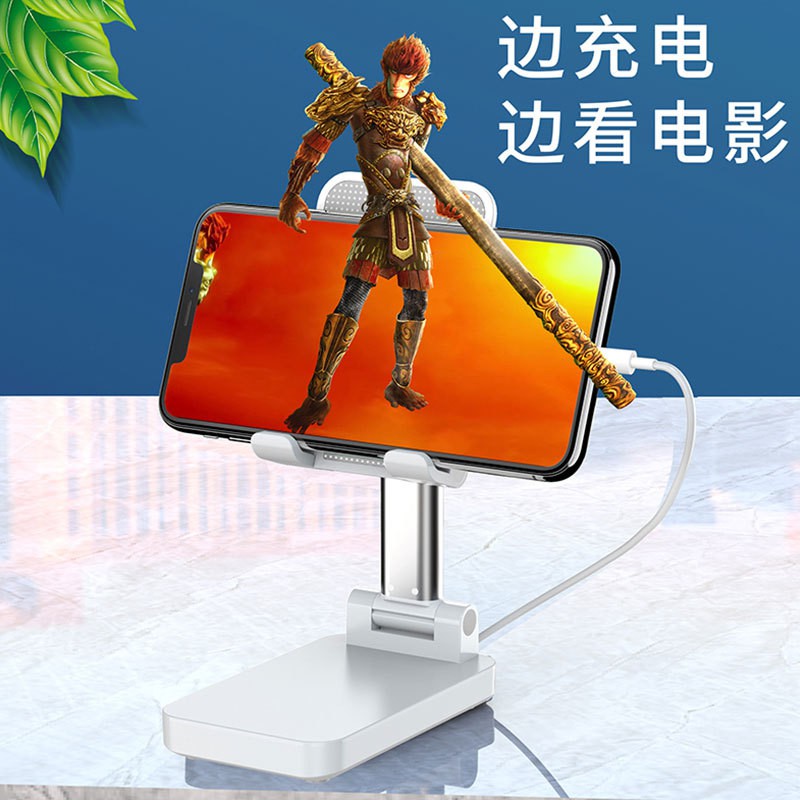 Giá đỡ điện thoại, máy tính bảng rất phù hợp để chơi trò chơi, xem video, xem ảnh, đọc, gõ, quay video và thiết kế khe trống ở phía dưới có thể sạc thiết bị cùng một lúc.