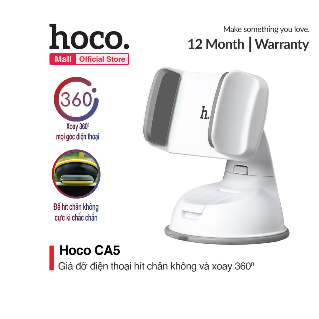 Giá đỡ Hoco CA5 kẹp điện thoại di động trên xe hơi xoay 360 độ đế hít chân không cực kì chắc chắnThông tin sản phẩm