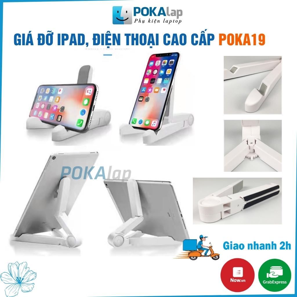 Tên sản phẩm: Giá đỡ ipad, điện thoại cao cấp POKA19 có 2 màu đen và màu trắng, được làm bằng chất liệu ABS.Trọng lượng: 0,15kg .
