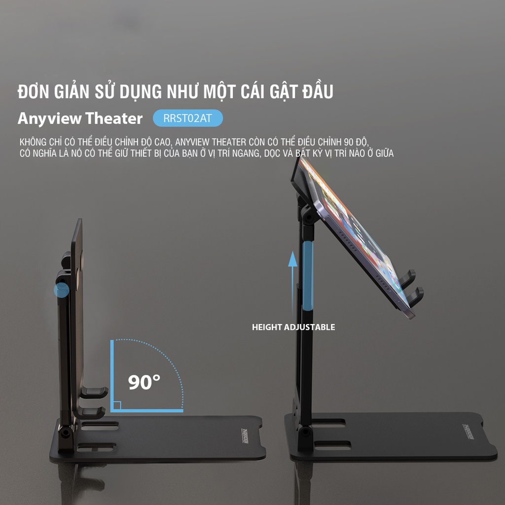 GIÁ ĐỠ IPAD MÁY TÍNH BẢNG ROCKROSE ANYVIEW THEATER - CHẤT LIỆU HỢP KIM NHÔM CHỐNG TRƯỢT, GẤP GỌN ĐA NĂNG, TRỤC XOAY 90 ĐỘThương hiệu: Rockrose