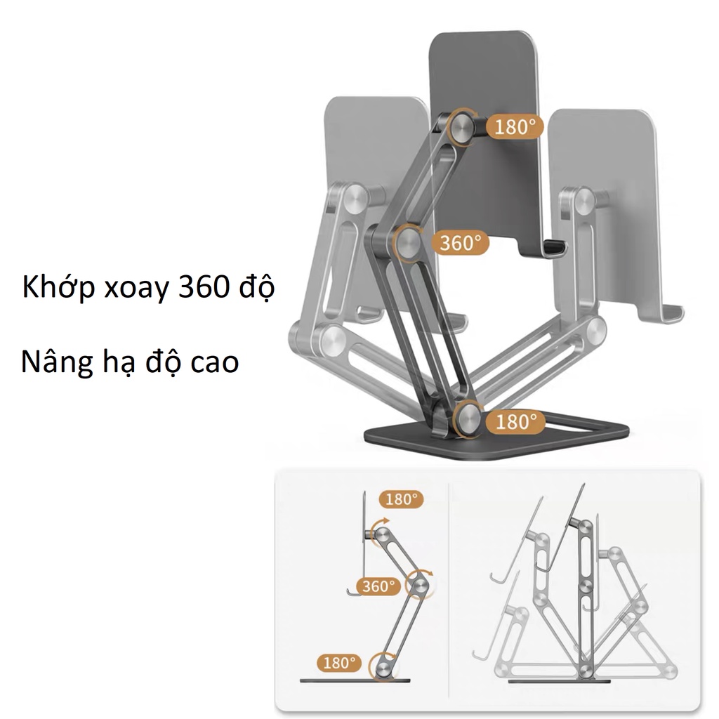 Giá đỡ ipad và nâng máy tính bảng, điện thoại hợp kim nhôm P66 Vu Studio