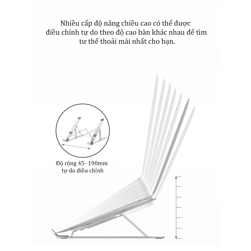 Giá đỡ, Kệ Đỡ Tản Nhiệt, Dùng Cho Ipad - MacBook - Laptop Phụ Kiện Cao Cấp Bằng Hợp Kim Nhôm Thông MinhChế tác từ nhôm nguyên khối với thiết kế công thái học thích hợp trên bàn làm việc.
