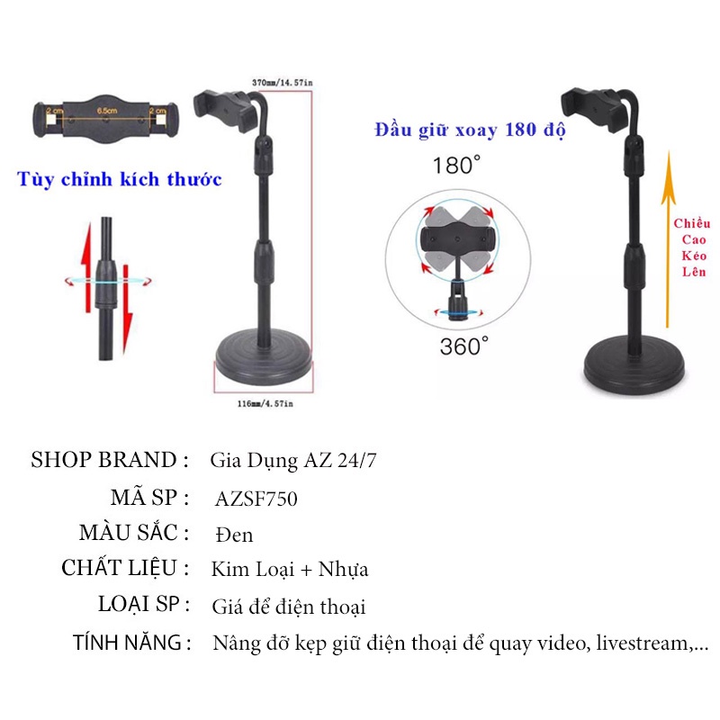 Giá đỡ kệ đỡ kẹp điện thoại để bàn livestream xem video ổn định xoay 360 độ dùng để quay phim ghi hình đa năng AZSF750Đặc điểm nổi bật của Giá Đỡ Điện Thoại