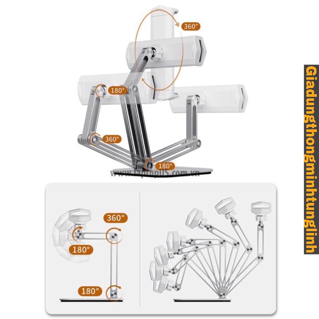 Giá Đỡ Kệ Ipad Máy Tính Bảng 3 Khớp Xoay 360 độ Gấp Gọn Đa Năng – Kệ Silicon đa điểm chống xước hợp kim nhôm cao cấp