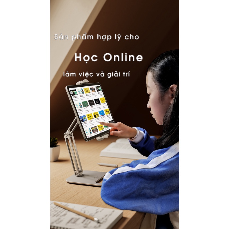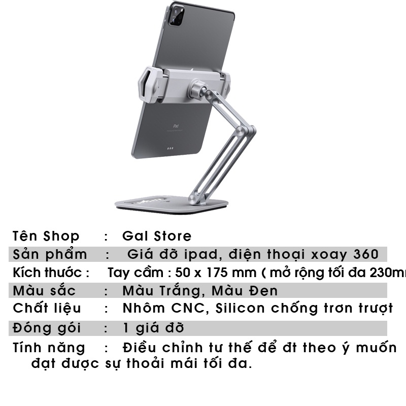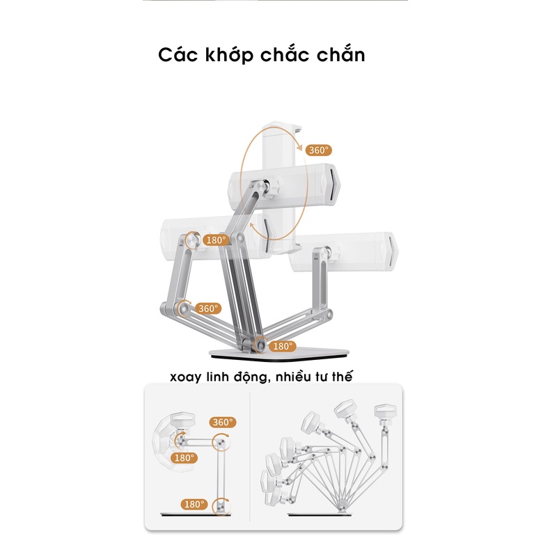 Giới thiệu Giá Đỡ Kệ Ipad Máy Tính Bảng 3 Khớp Xoay 360 độ Gấp Gọn Đa Năng – Kệ Silicon đa điểm chống xước hợp kim nhôm cao cấpo