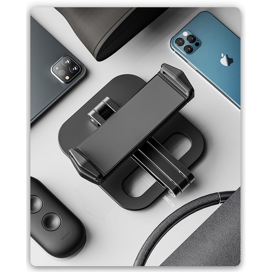– Tay giữ Thiết bị đươc bằng Nhựa Cao Cấp đệm Cao Su giữ máy chắc chắn, Xoay 360* góc nhìn lên xuống và Trục Màn Hình 360*.