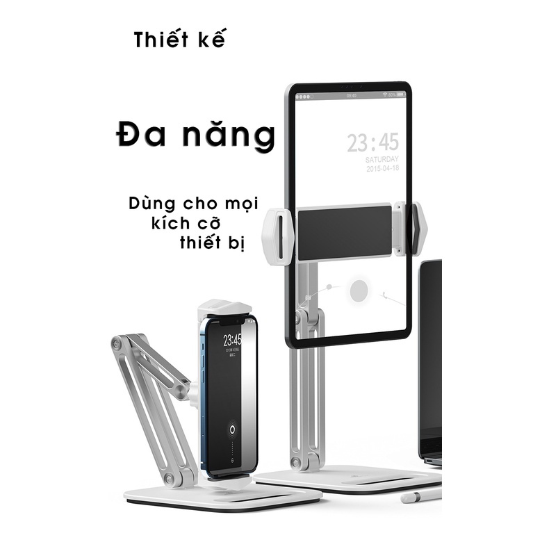 Giá Đỡ Kệ Ipad Máy Tính Bảng 3 Khớp Xoay 360 độ Gấp Gọn Đa Năng – Kệ Silicon đa điểm chống xước hợp kim nhôm cao cấpo