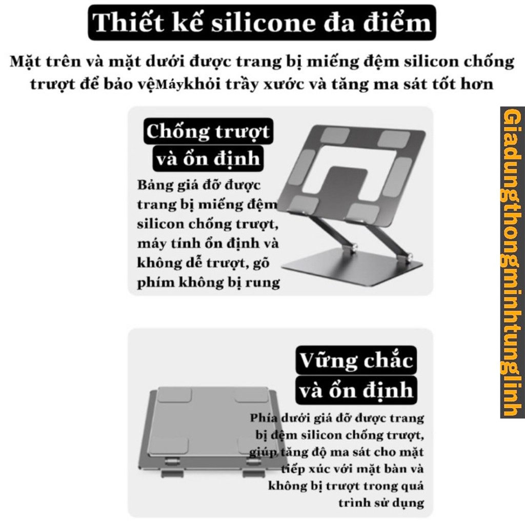 💥Miếng đệm silicone trên đỉnh của giá đỡ bền và không trơn trượt, có thể bảo vệ máy tính khỏi trầy xước và trượt