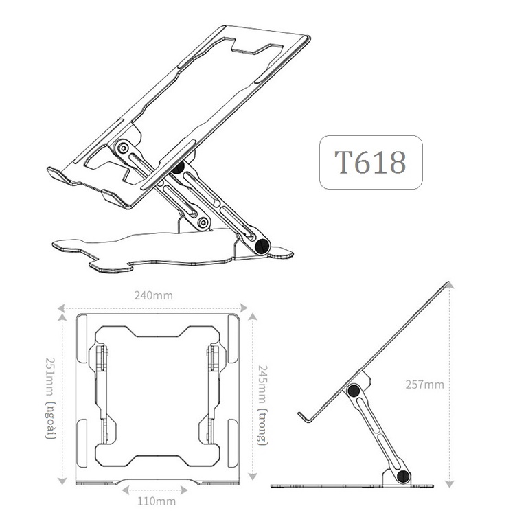 Giới thiệu Giá đỡ kê laptop macbook iPad nâng cao laptop chống mỏi vai gáy kiêm đế tản nhiệt T618 bằng hợp kim nhôm