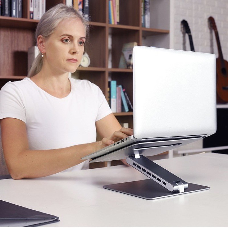 Với thiết kế xoay thay đổi cao độ của Đế cực kì chắc chắn, chịu được trọng lượng 8kg thoải mái để anh em để Laptop của mình lên