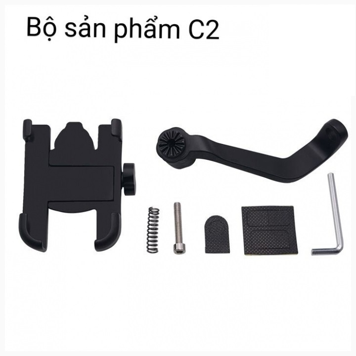 Giá Đỡ Kẹp Điện Thoại Bằng Kim Loại Dành Cho Xe Máy C2 gắn chung với kính xe thích hợp Shipper, Xe Công Nghệ, Grap, Now