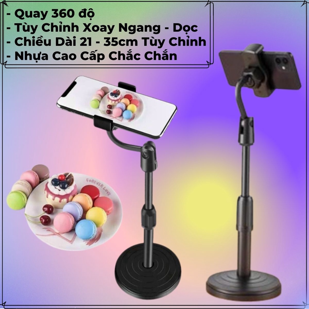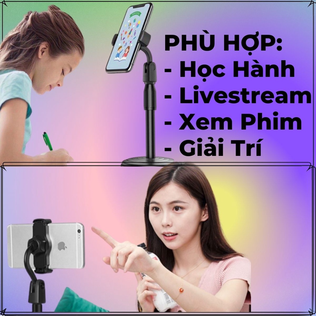 Giá đỡ kẹp điện thoại để bàn xoay 360 độ, tùy chỉnh độ dài, chất liệu nhựa cao cấp để livestream, giải trí, học online----------