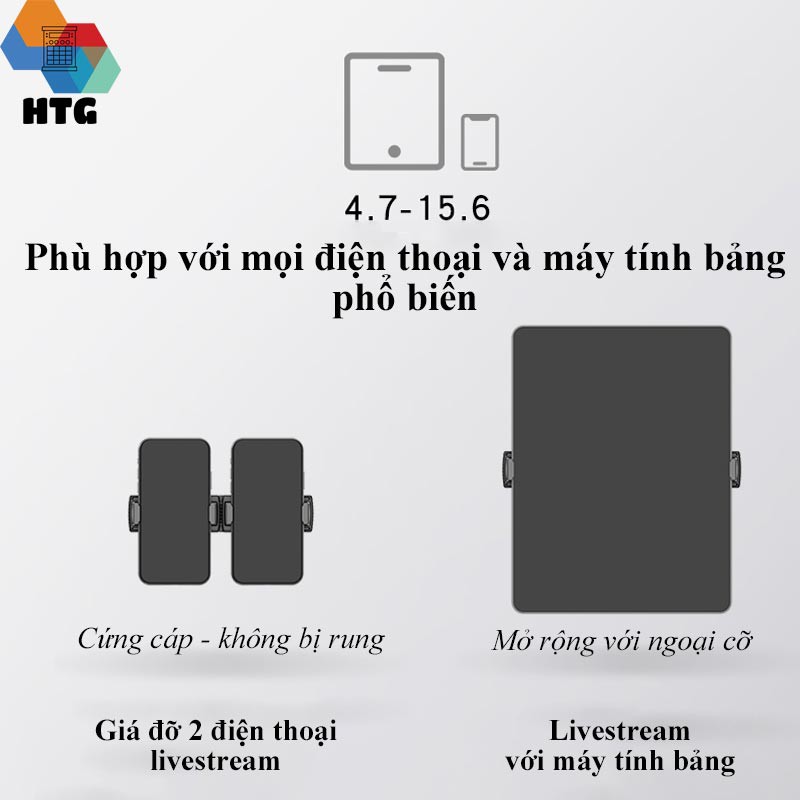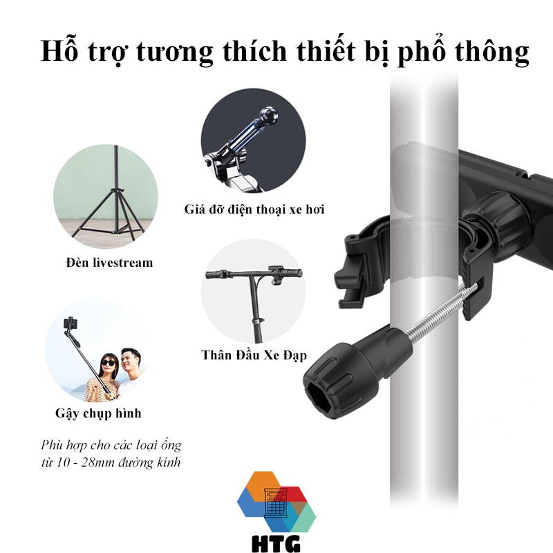 - Giá đỡ kẹp điện thoại gắn vào tripod hỗ trợ livestream, quay phim nhiều máy cùng lúc, gắn xe đạp, gắn cây đèn livestream, phù hợp cả với giá đỡ điện thoại xe hơi, hay đế livestream trên bàn đều được.