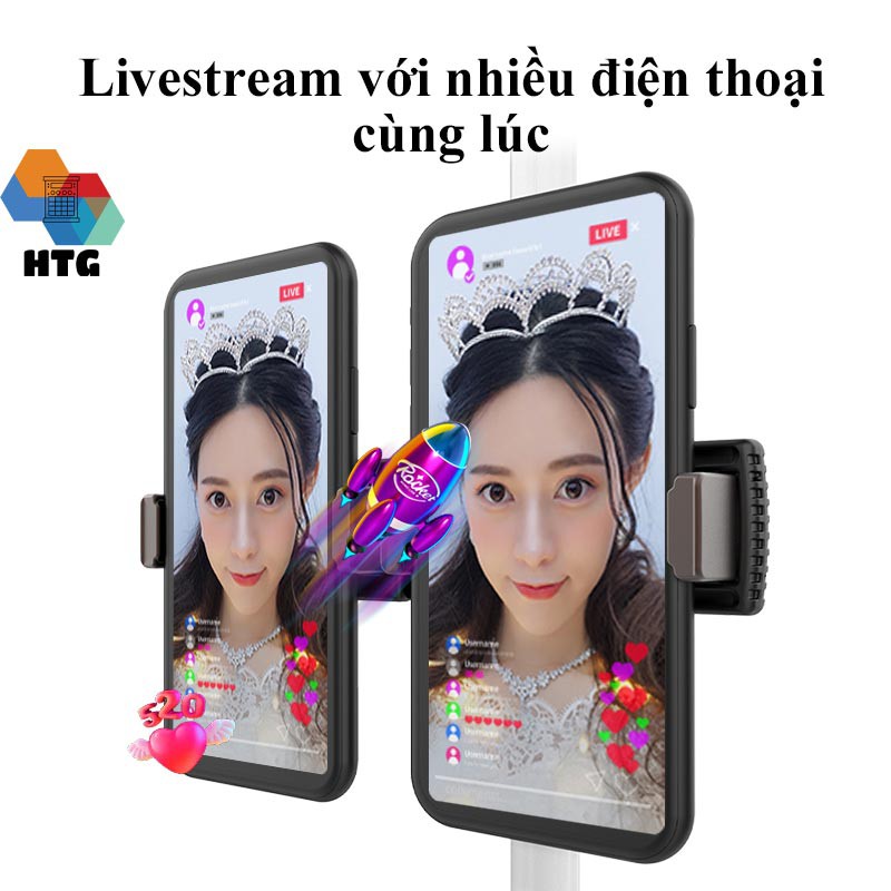 Giá đỡ kẹp điện thoại đôi gắn vào tripod, đèn livestream, gậy chụp hình, hỗ trợ livestream,live quay Video sản phẩm