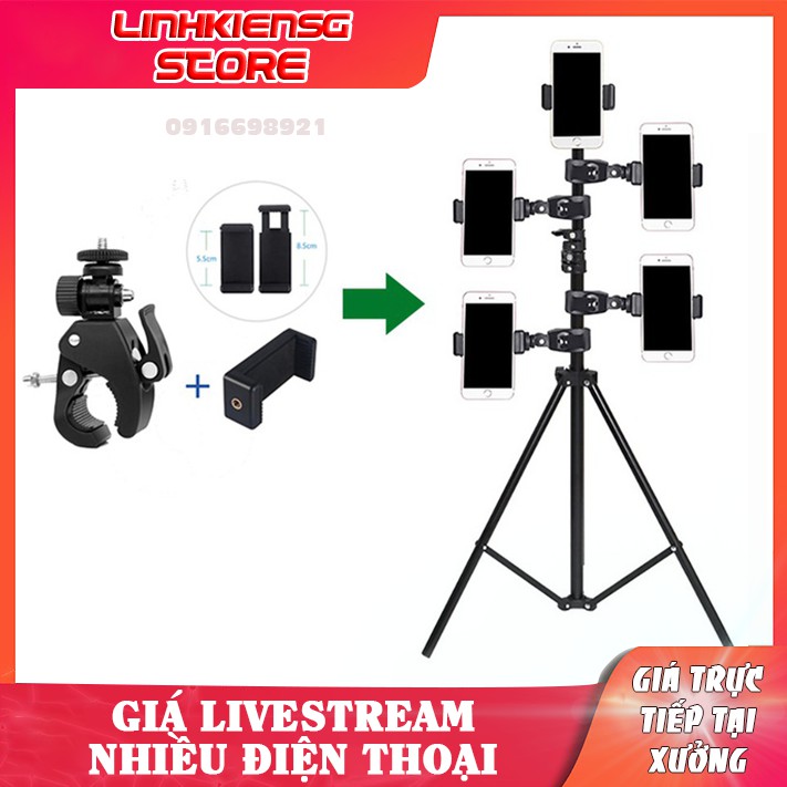 Giá đỡ kẹp điện thoại gắn vào tripod hỗ trợ livestream,live quay phim nhiều máy cùng lúc, gắn xe đạp giá rẻ