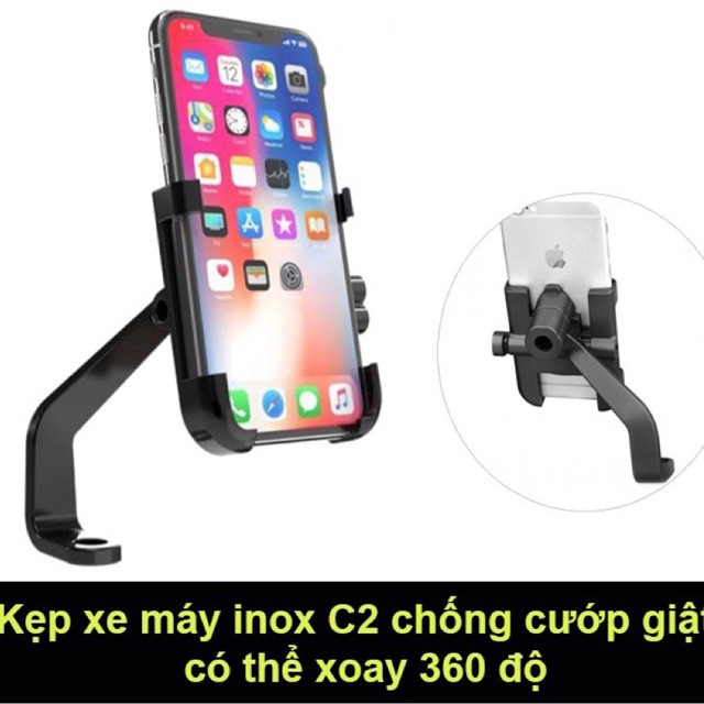 Giá đỡ - Kẹp điện thoại gắn xe máy Inox C2 cao cấp chống rung chống trượt - gắn điện thoại siêu chắc chắn
